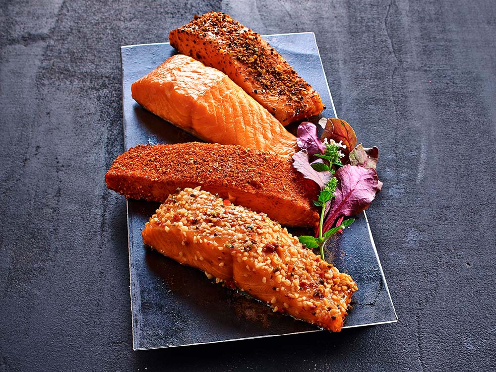 “Stremel” is the North German word for “strips.” We prepare our salmon fillet strips in the traditional way: The filleted salmon is salted and hot-smoked at temperatures above 70 °C. This results in the reddish-golden-yellow color and the pieces remain nice and juicy inside. Spices such as pepper, garlic, or our Mexico mix make the Stremel a varied culinary delight.